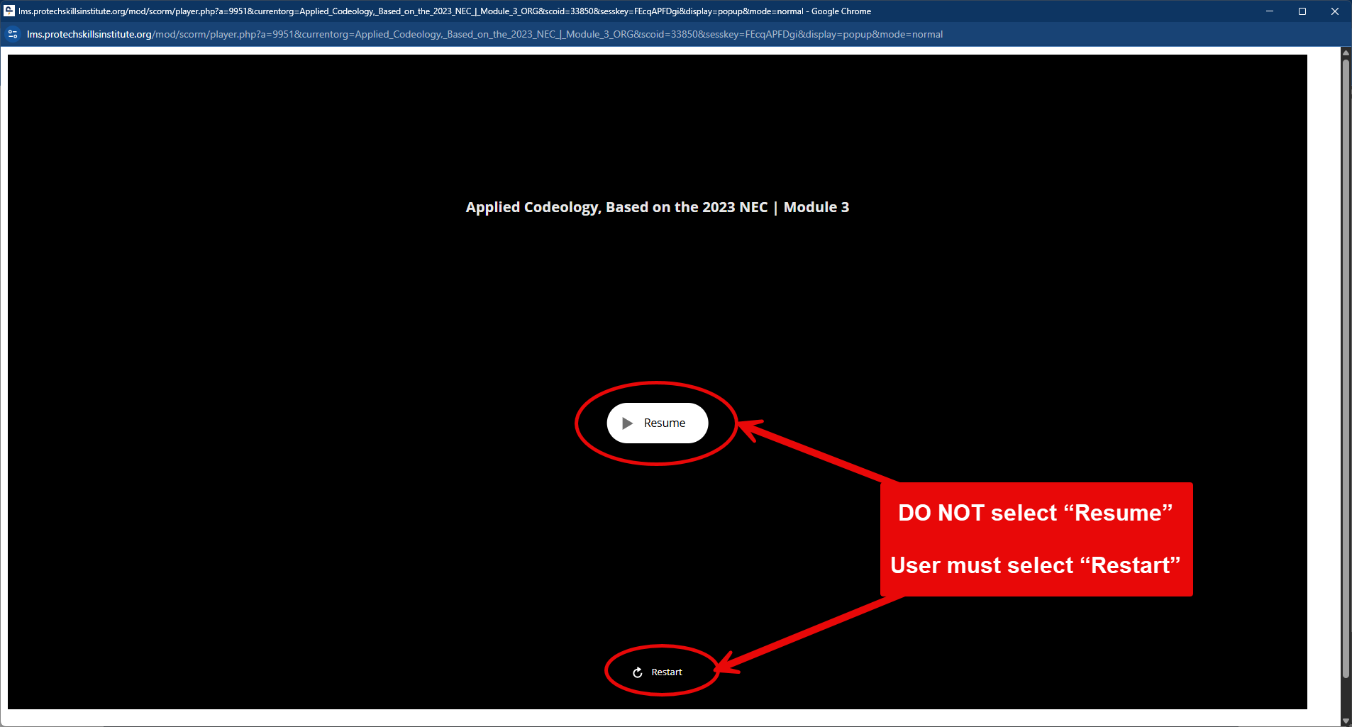 They must click Restart to reset the module.